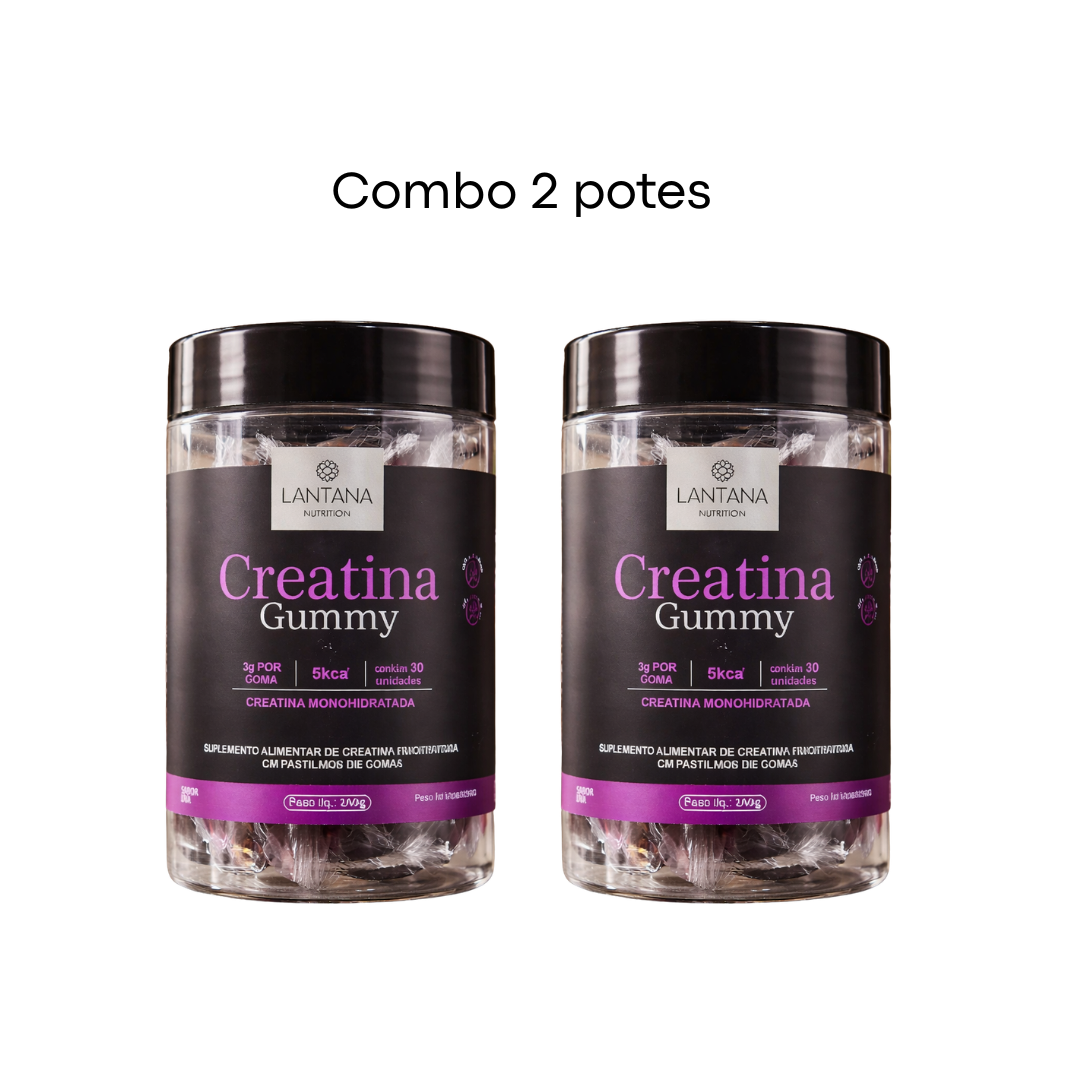 Combo de 02 potes do produto, sendo 01 pote = 30 gomas de creatina 3g.